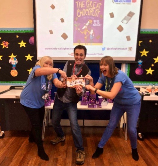 It was wonderful being asked to be part of The Northern Children’s Book Festival again. I had an amazing time visiting a number of schools in Gateshead and Durham. It’s always a joy to return back up North and spread my chocolatey panic with such engaging, enthusiastic and funny audiences. It was also a pleasure meeting our brilliant librarians again. I was well looked after by Maria, Chris (from Gateshead Libraries) and Julie (from Durham) and received warm welcomes in the schools.