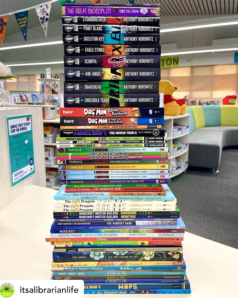 Here is a fantastic pile of books in a beautiful school library in Perth, Western Australia. They have been selected by librarian and huge book champion, Michelle. Please check out her Instagram account, @itsalibrarianlife, which is packed with great book recommendations and general library fun.