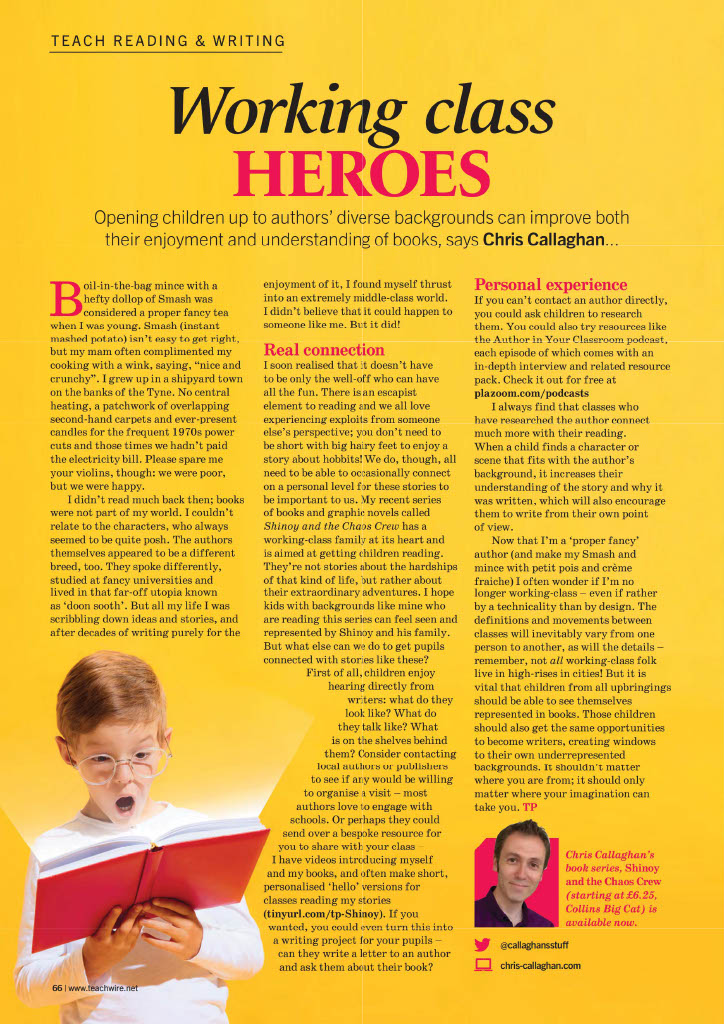 Delighted to have written an article for Teach Primary Magazine about how children can improve their enjoyment and understanding of books written by authors from diverse cultures – in this case, a working class background.